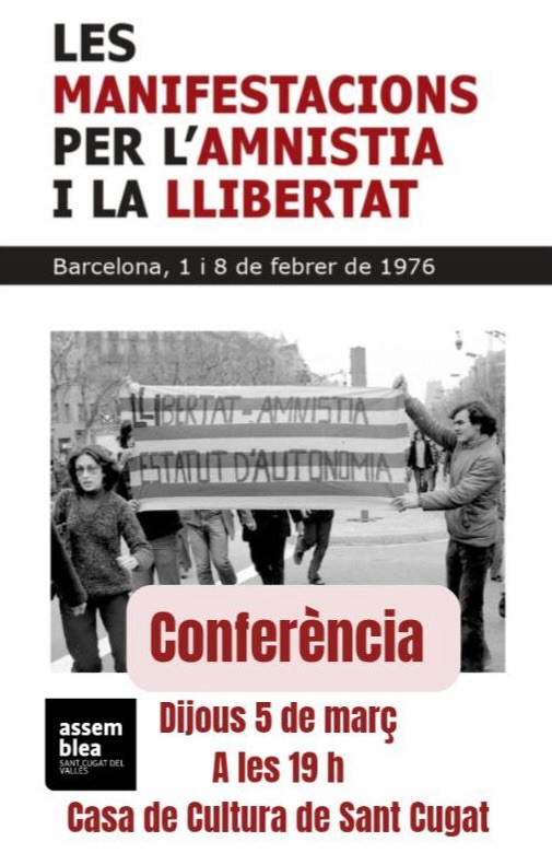 Dissortadament el passat dia 12 es va haver de suprimir el 3r acte que havíem programat: “De la dictadura franquista al present”, la segona xerrada – conversa amb l’historiador Josep Mª Solé i Sabaté, per l’alarma per les fortes ventades (VENTCAT). L’hem reprogramat pel dimecres 25 de març.