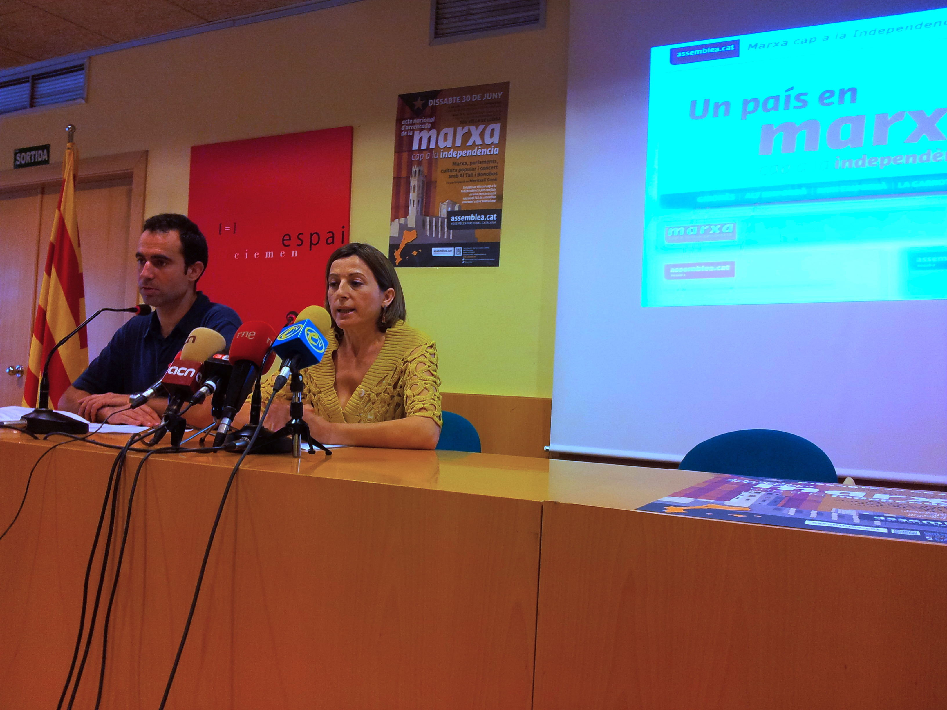 La Marxa constarà de centenars d’actes –ja n’hi ha confirmats més de 200‐, arrencarà el dia 30 a Lleida i culminarà a Barcelona en una gran concentració l’11 de setembre que ha de marcar un punt de no retorn, per instar a les institucions catalanes que “comencin converses per negociar la secessió amb Espanya”. “Per nosaltres la independència és una qüestió de dignitat”, ha dit Forcadell, que ha afegit: “no volem viure agenollats a Espanya podent viure dempeus a Europa”.