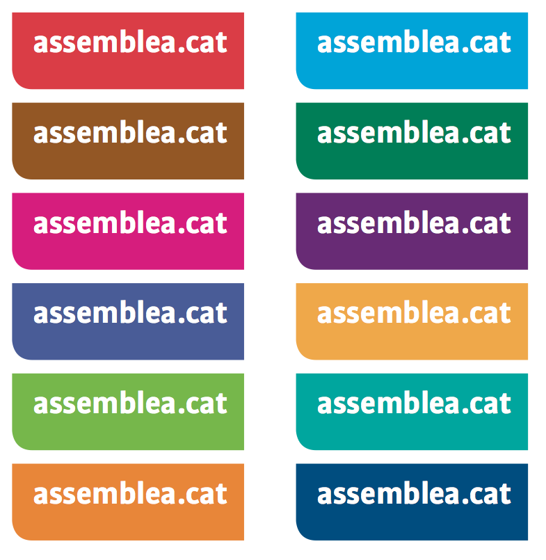 A partir d’aquí, amb aquesta forma, i sota la paraula “assemblea.cat” es pot jugar i afegir-hi el que vulguem (assemblea nacional catalana, el nom d’un poble, d’una sectorial, d’una activitat que fem etc) i mantenim sempre la identificació amb el “logo” i amb l’assemblea. Aquesta forma de pestanya també serviria com a format per les nostres pàgines i textos a la web, als “newsletter”, etc… i així qualsevol text seria identificable com a una cosa de l’assemblea