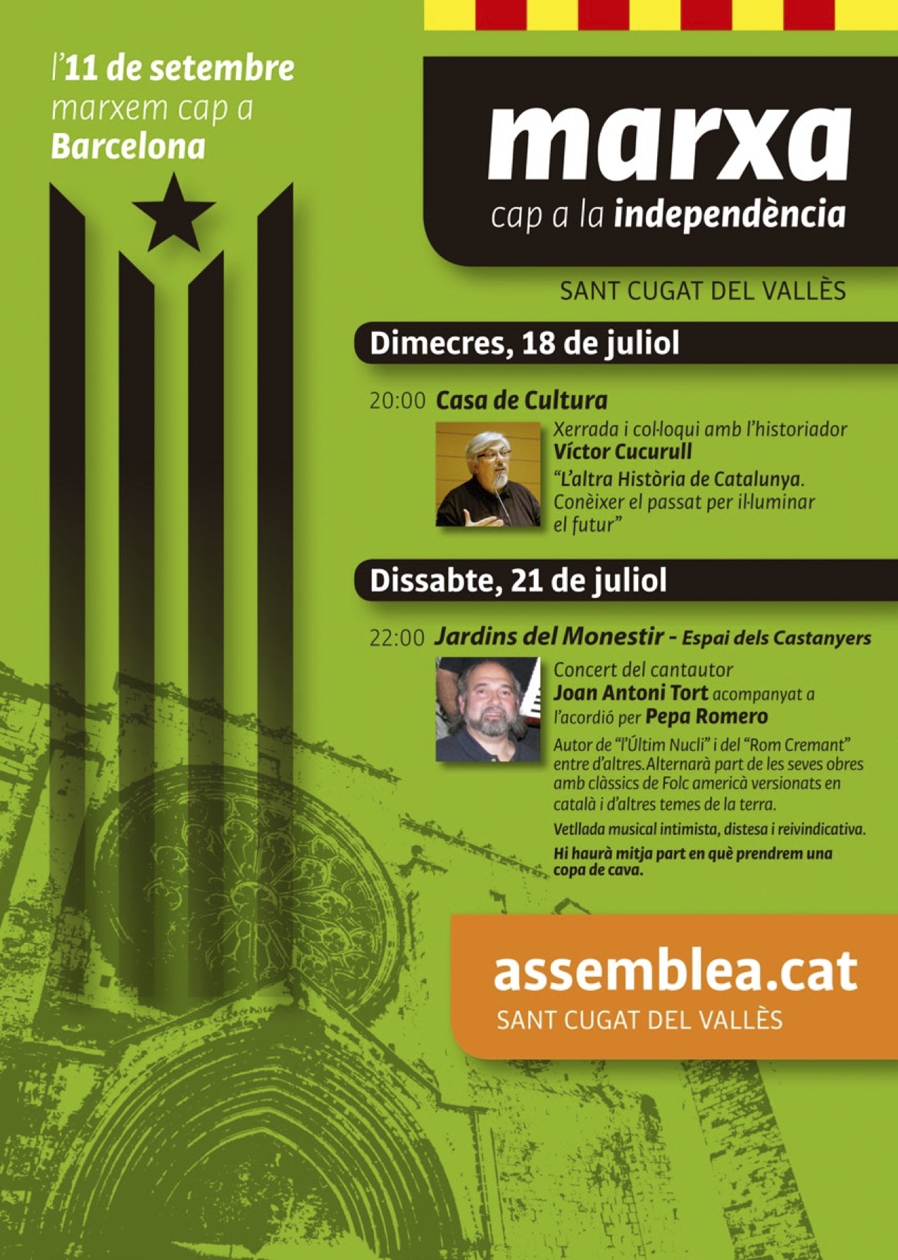 Més de 200 persones han participat en l’inici de la Marxa per la Independència. Ha recorregut les principals vies de la Ciutat i ha finalitzat a l’Ajuntament, on, davant una representació del Consistori, l’escriptor santcugatenc Víctor Alexandre ha llegit el manifest. Els Castellers de Sant Cugat han finalitzat l’acte amb un pilar de 4. Companys de Bellaterra, de Rubí i de Sant Quirze ens han acompanyat. Gràcies!!