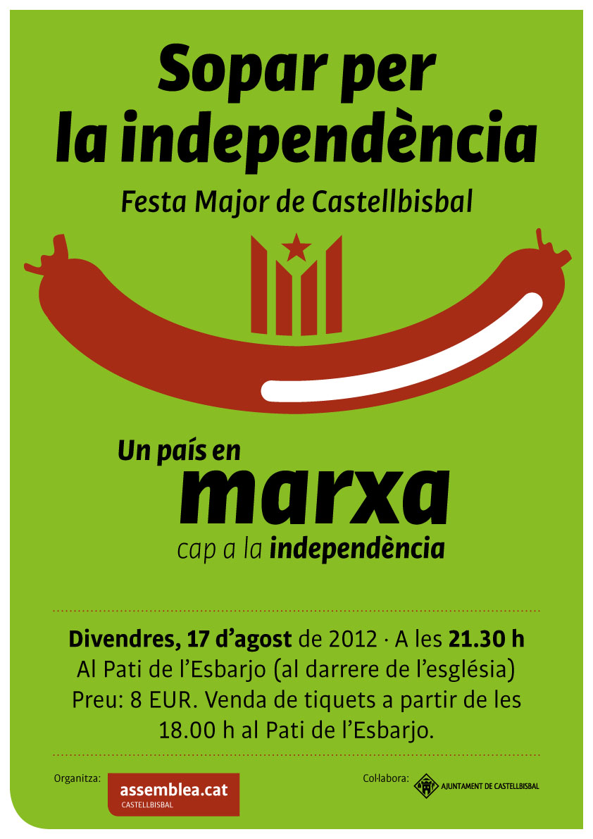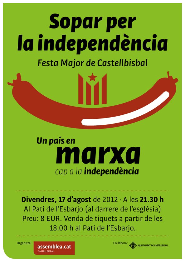 Per la Festa Major de Castellbisbal es farà un sopar per la independència el divendres 17 d’agost a les 21:30 al pati de l’Esbarjo.