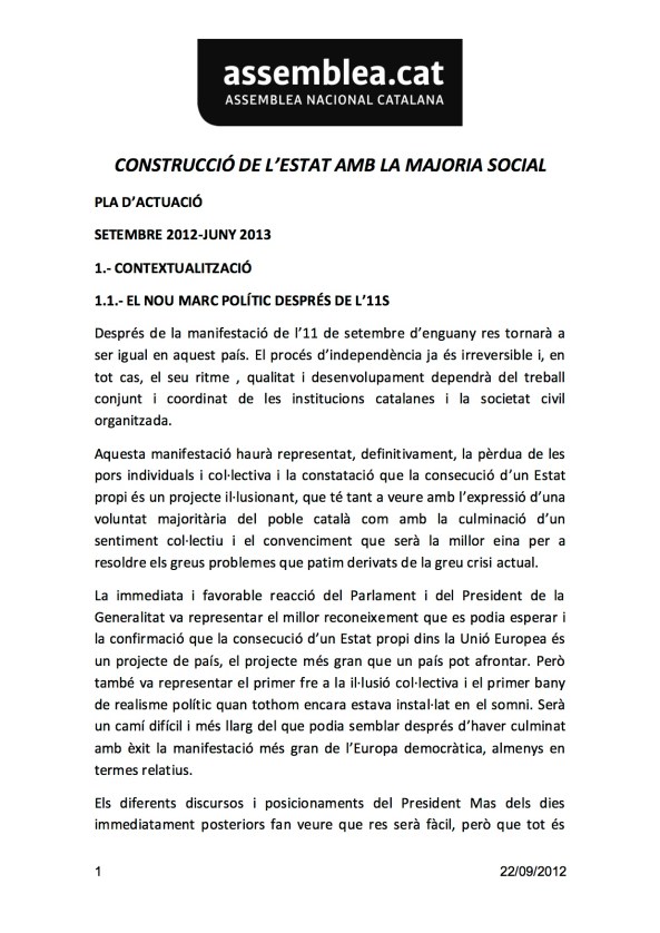 El Secretariat Nacional de l’ANC s’ha reunit aquest dissabte a Amposta i ho tornarà a fer a Barcelona el proper 6 d’octubre. Es prepara un nou pla d’acció que s’ha aprovat parcialment aquest dissabte però del qual no es coneixeran els detalls fins que no es completi en el proper plenari del secretariat. Forcadell ha apuntat que el pla és una adaptació del full de ruta que ja havia establer l’Assemblea però que s’ha vist desbordat per la rapidesa dels esdeveniments. “Tot ha anat molt de pressa i cal concretar les accions que es prendran a partir d’ara”, ha apuntat la presidenta.