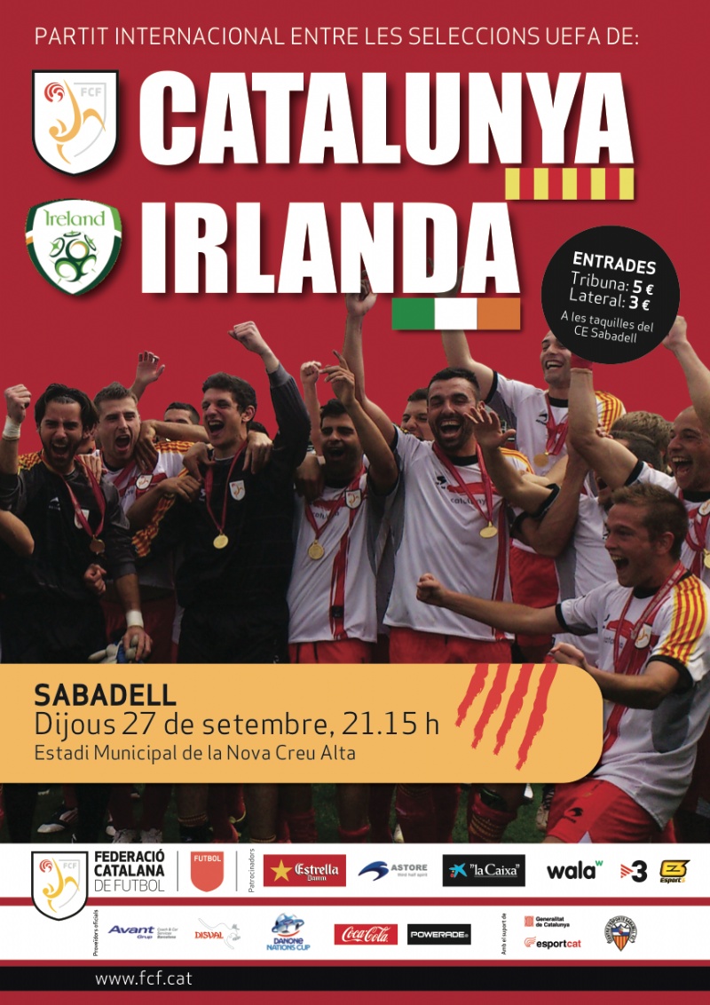 El proper dijous 27 de setembre a les 21,15 es farà a l’estadi de la Nova Creu Alta de la ciutat de Sabadell un partit de la selecció catalana de futbol de preparació per la copa de la UEFA que es disputarà a Kiev (Ucraïna) el proper octubre.