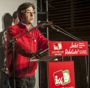 GRA322. BILBAO, 04/09/2012. El candidato a lehendakari por Ezker Anitza IU, Mikel Arana, durante su intervención en el acto de inicio de campaña electoral de su partido celebrado hoy en la sede del partido en Bilbao. EFE/MIGUEL TOÑA