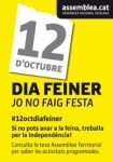 Per això, per a aquells que no puguin anar a treballar, l’ANC ha organitzat la campanya “12 d’octubre dia feiner. Jo no faig festa” (#12octdiafeiner) amb diversos actes i accions simbòliques per continuar treballant per la independència.