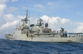 L’embarcació de l’armada espanyola ha impedit la sortida els vaixells que no portaven el banderí espanyol visible