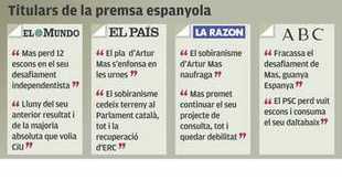 Els mitjans bascos parlen del retrocés de Mas, tot i guanyar les eleccions (Gara i Berria), i en alguns casos subratllen l’ascens d’ERC (EITB). Des d’Escòcia, The Scotsman parla d’una nit ambivalent per als independentistes catalans.
