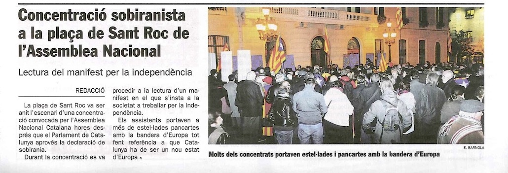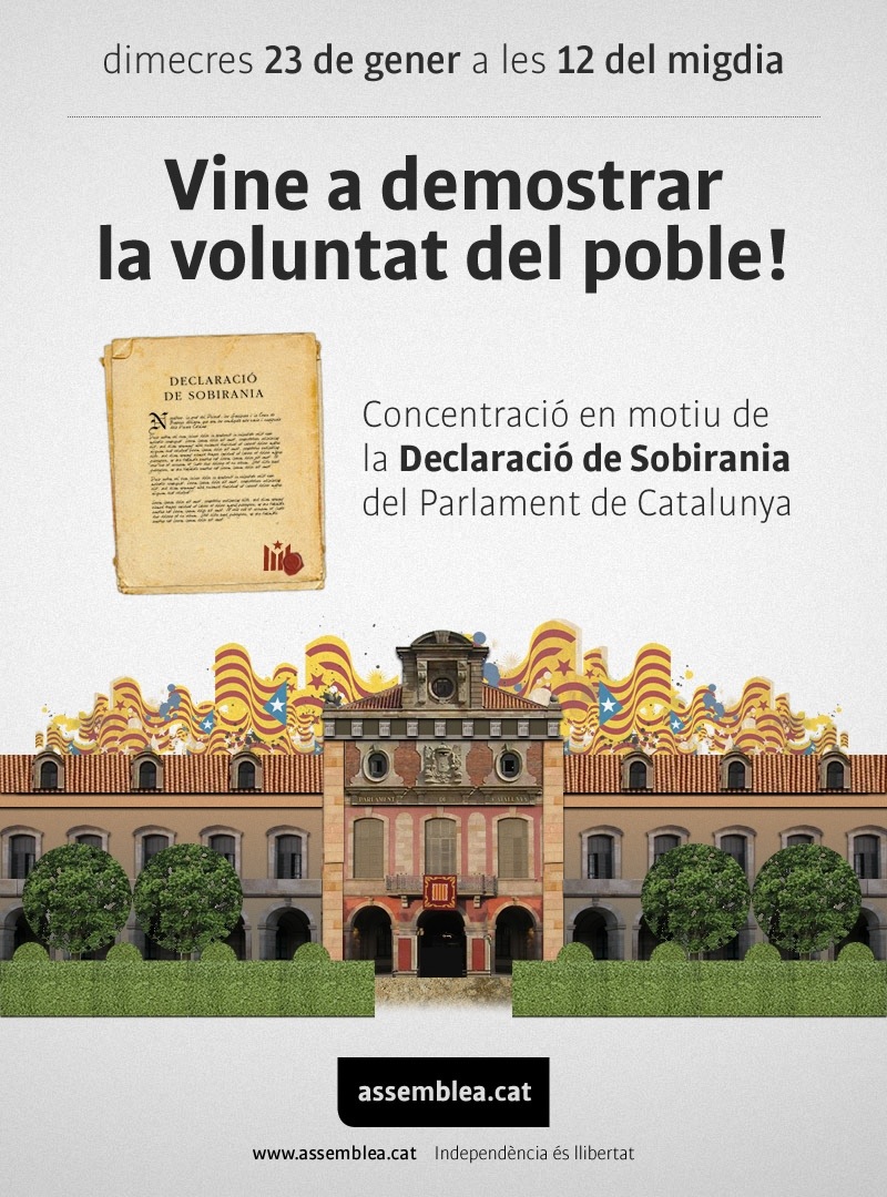 Quan a la Declaració de Sobirania del Poble de Catalunya feta el dia abans al Parlament de Catalunya, el President Pujol la veu com un fet de gran importància històrica i prudència a la vegada sense excloure una certa preocupació. Reclama “el pal de paller” que lideri el procés per assolir una unitat política i social prou gran en la que s’impliqui tothom i el missatge arribi a tots els barris i ciutadans del país per difícil que sigui. Ara bé, creu que el pas pel congost no l’han de dirigir esverats ni inexperts per les complicacions, trampes i paranys que s’hi troben; els experts sabran detectar les trampes posades i trampejar les dificultats.