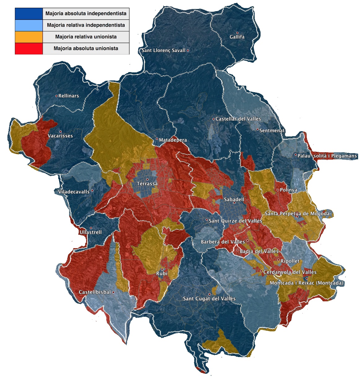 - Cerdanyola, Montcada i Reixac, Sta. Perpètua de Mogoda i Polinyà, majoria unionista i pocs nuclis independentistes