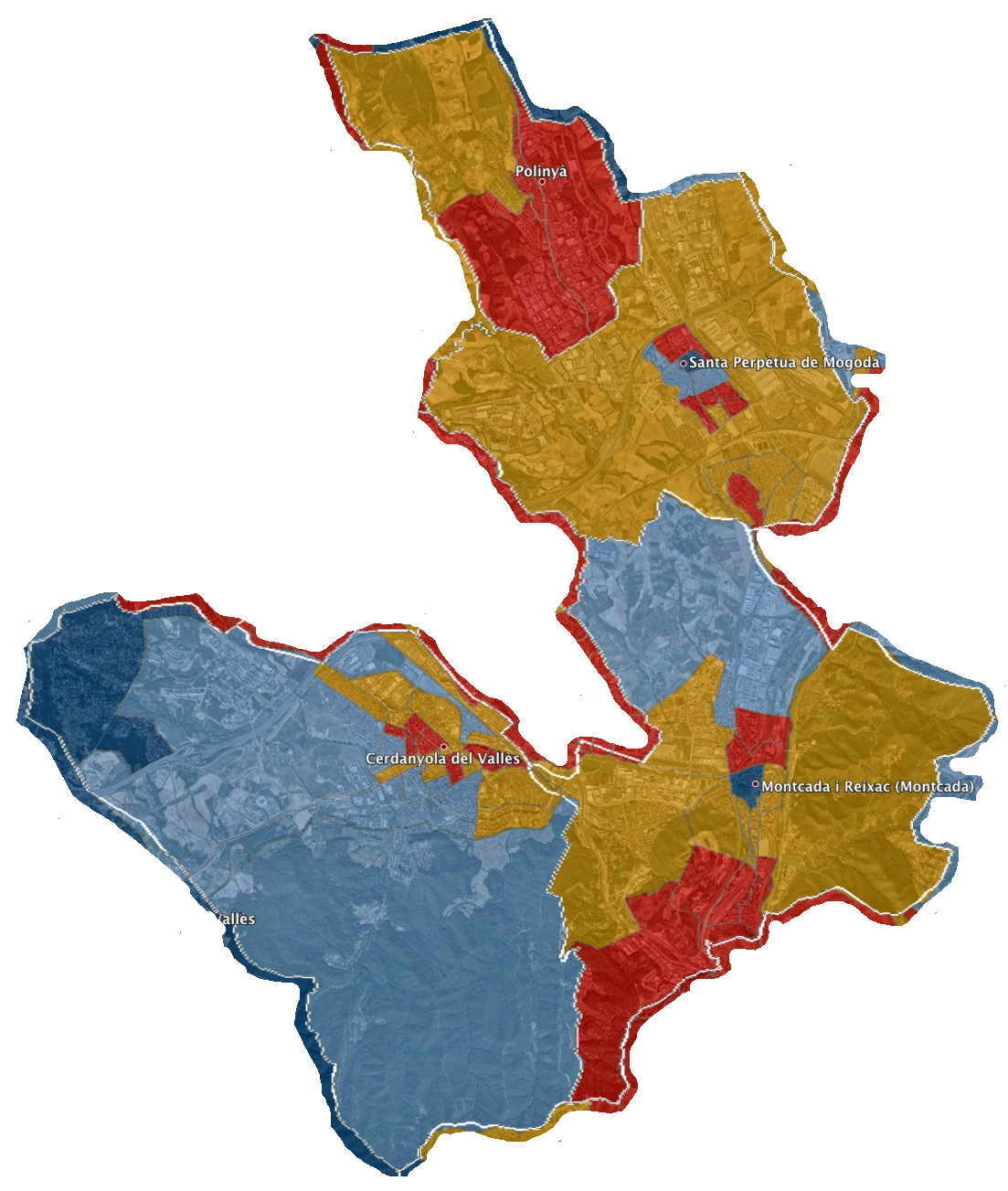 - Cerdanyola, Montcada i Reixac, Sta. Perpètua de Mogoda i Polinyà, majoria unionista i pocs nuclis independentistes