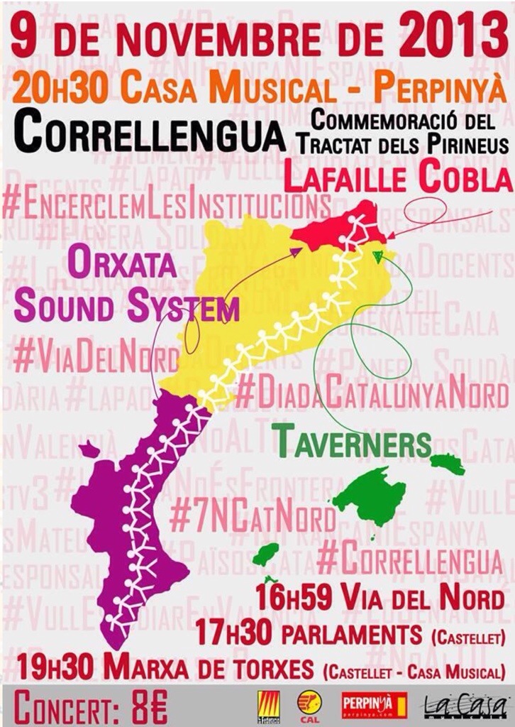 També aquest dissabte 9 de novembre a la tarda es convoca la Via del Nord que encerclarà les institucions a Perpinyà i tindrà parlaments, concert i un marxa de torxes. Podeu apuntar-vos a la Cadena Nord en aquest enllaç.