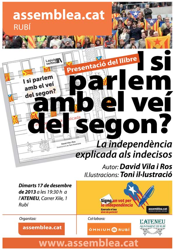 Us convidem el proper dimarts 17 de desembre a les 19.30h, a l’Ateneu Municipal de Rubí, a la presentació d’un dels llibres que millor ens donarà arguments de com explicar el nostre procés a tots els indecisos que hi ha actualment a Rubí i Catalunya.