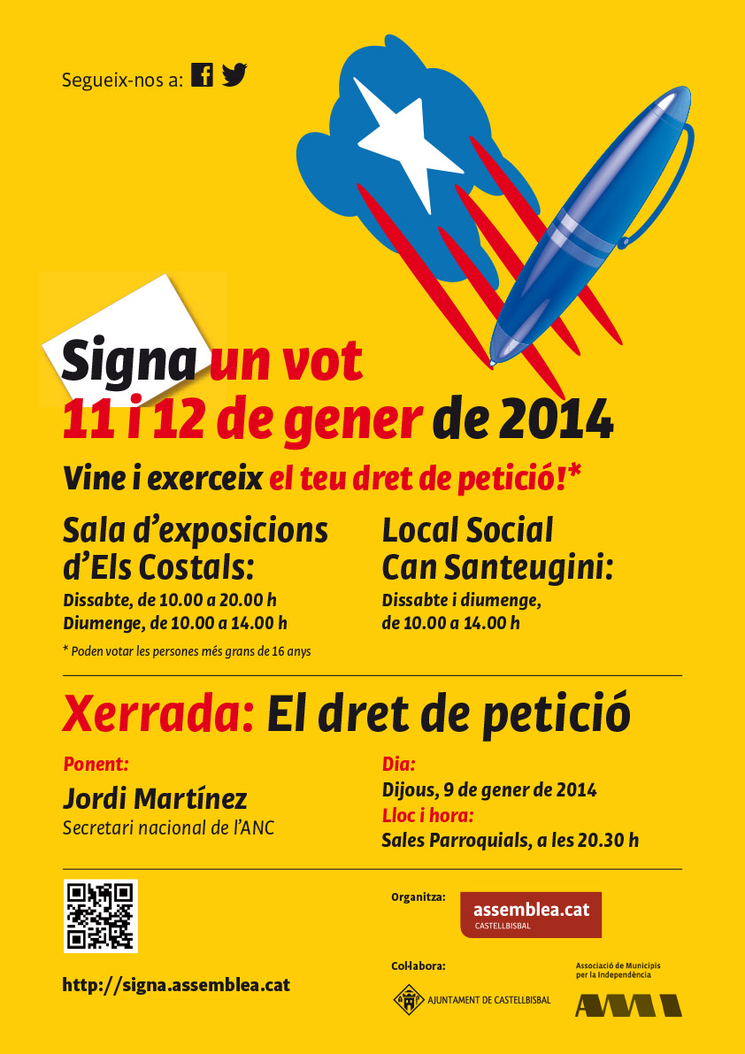 Si encara no has signat per la independència, no deixis passar aquesta oportunitat, a Castellbisbal ens trobaràs a: