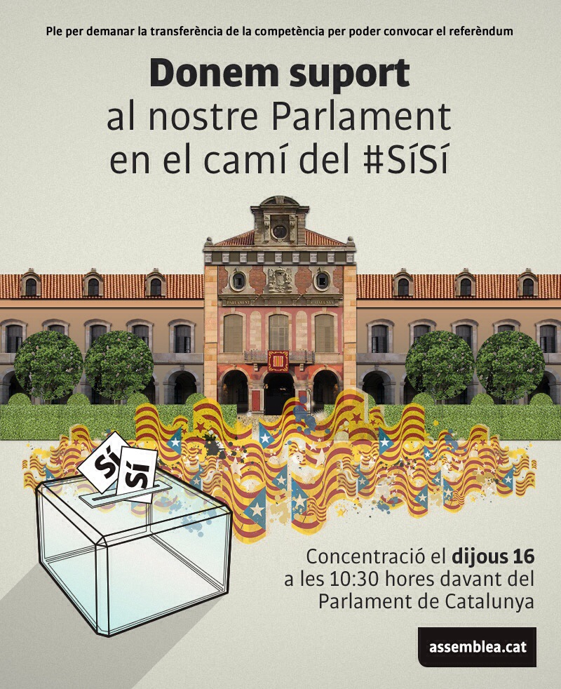 L’Assemblea Nacional Catalana (ANC) ha convocat una concentració el proper dijous 16 de gener a les 10:30 a les portes del Parlament, coincidint amb el ple que se celebrarà per demanar al Congrés de Diputats el traspàs de la competència per poder convocar un referèndum.