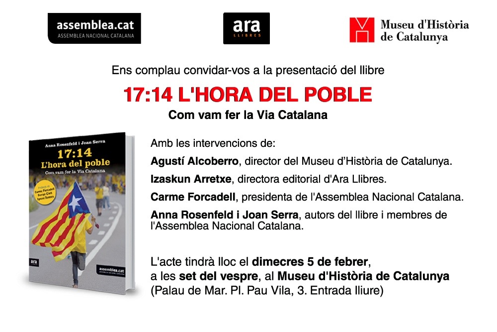 Us convidem a la presentació del llibre de l’ANC: “17:14 L’HORA DEL POBLE. Com vam fer la Via Catalana”.