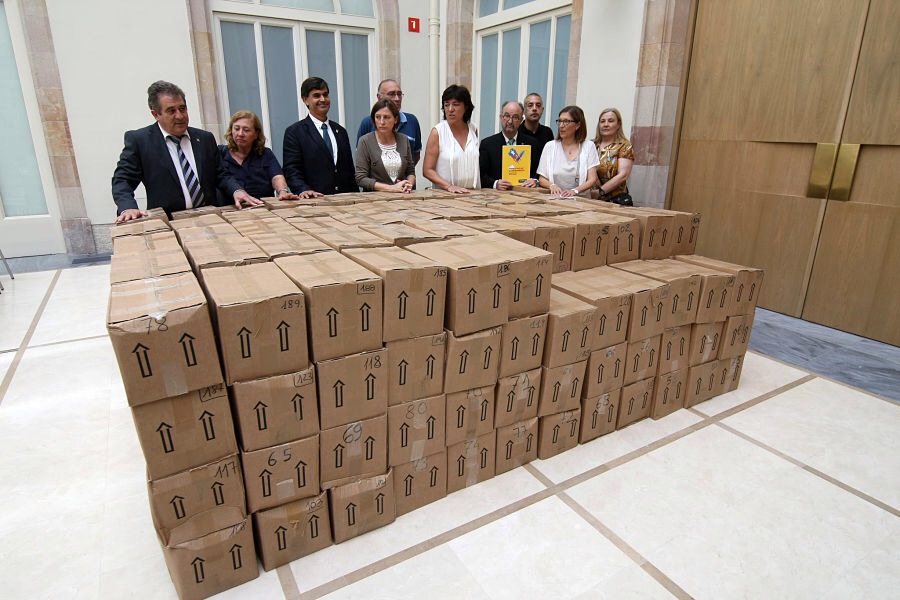 Aquest dilluns 15 de setembre s’han entregat a la presidenta del Parlament de Catalunya, Núria de Gispert, les quasi 750.000 instàncies recollides per la campanya Signa un Vot per la Independència encapçalada per l’Assemblea Nacional Catalana amb el suport de l’Associació de Municipis per la Independència.