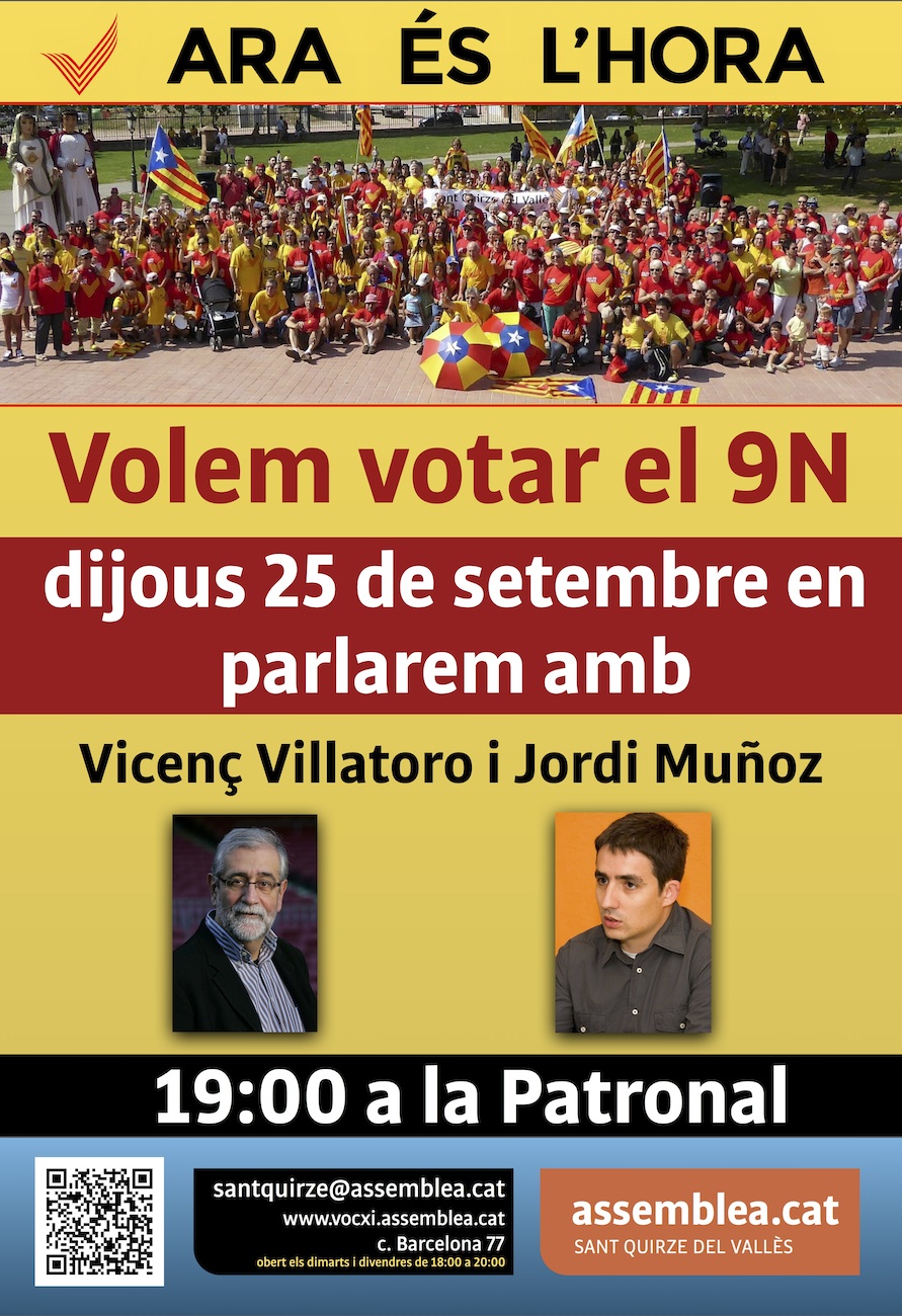 Forcadell, en la seva intervenció, ha fet referència a l’èxit de la Via catalana 2014; explicant que és la millor carta de presentació per aconseguir que “el Sí a la independència guanyi a les urnes el 9N”. Forcadell ha afegir que “no hi ha cap motiu perquè el 9 de novembre no hi hagi les urnes per la consulta”, i ha explicat que la tasca d’ARA ÉS L’HORA és “guanyar-la”. En aquest sentit, ha expressat que la campanya començarà el 4 d’octubre, però que en cas que el Tribunal Constitucional la suspengui, la resposta serà iniciar la campanya aquella mateixa tarda. “Davant la decisió del TC, la resposta serà consulta, consulta i consulta”, han coincidit Forcadell i Torra.