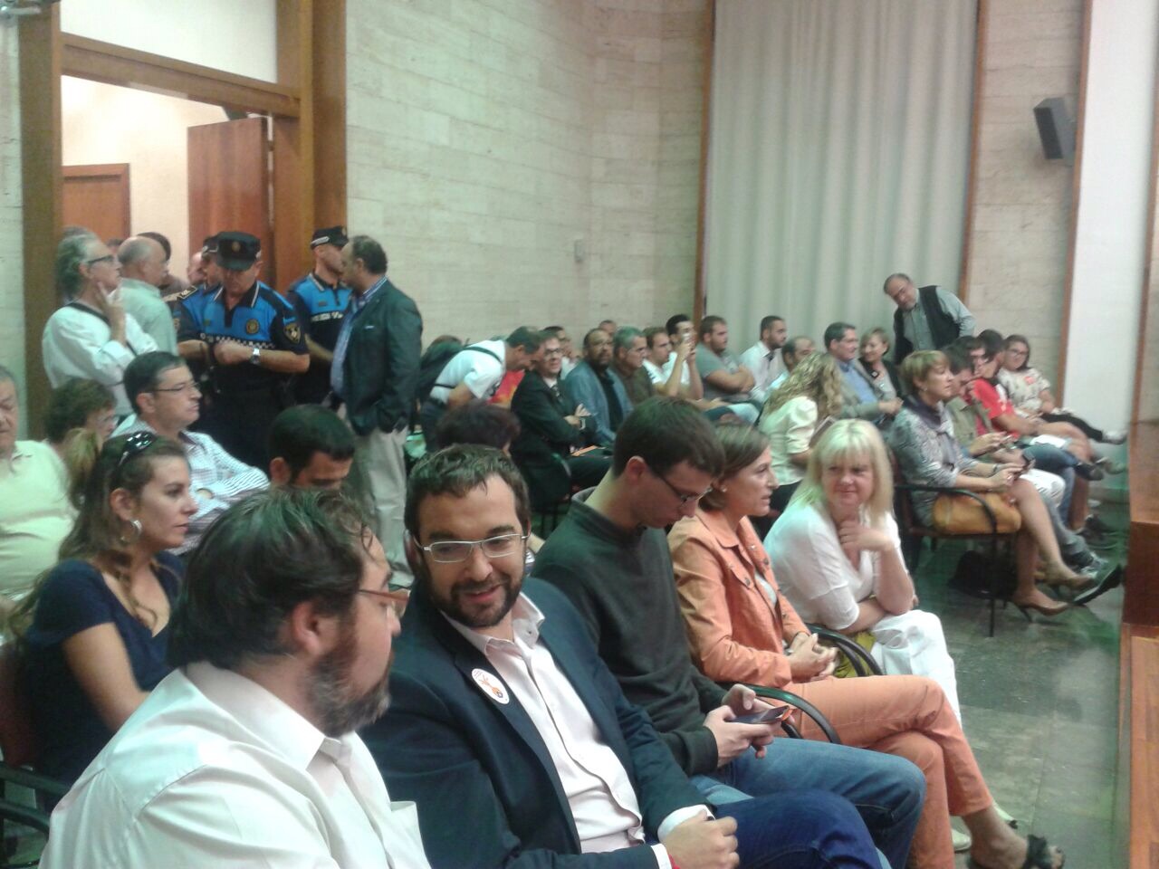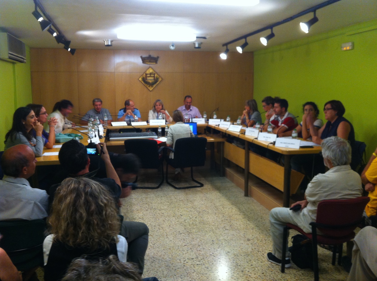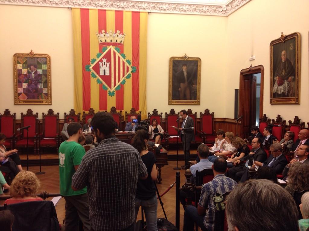 La moció debatuda havia estat prèviament consensuada per l’equip de govern del PSC i pels grups de l’oposició de CiU i L’A.. Els dos regidors del PP han marxat abans de les votacions tal com recull la foto.