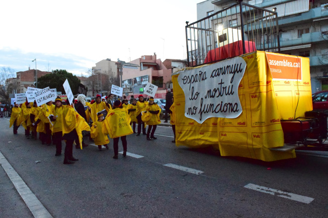 Terrassa per la Independència-ANC va decidir participar en la rua de Carnestoltes de Terrassa (14/2/15) amb una comparsa que ajudés a visualitzar els problemes de Catalunya amb Espanya. El nom de la comparsa era “Espanya, carinyu, lo nostru no funciona”, de la cançó de Mali Vanili de (quasi) el mateix nom, que també va ser la banda sonora de la coreografia. Hi vam participar una quarantena de persones.