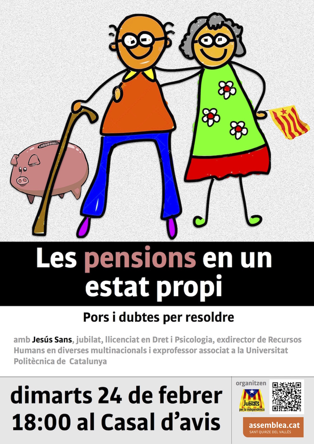 La conferència serà al Casal d’avis a les 18:00 i la farà en Jesús Sans, membre de Jubilats per la independència.