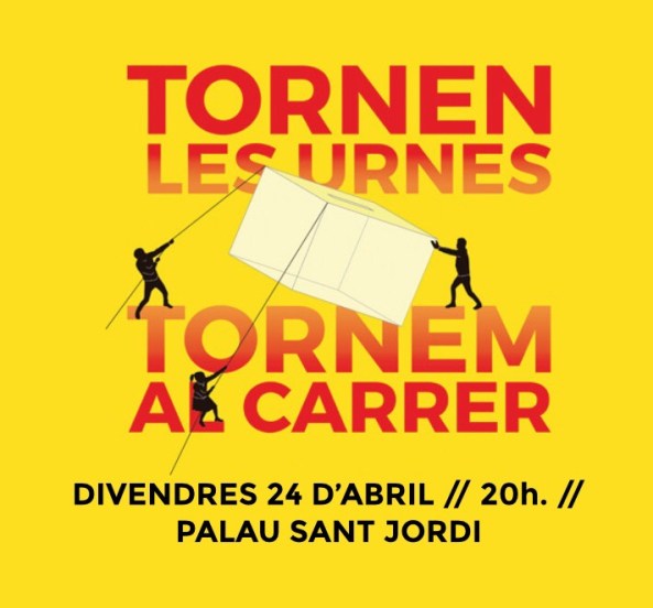 ‘Tornen les urnes, tornem al carrer’ reivindicarà la feina a fer per tal de guanyar les eleccions plebiscitàries del 27 de setembre, posant especial èmfasi a les municipals del 24 de maig, que han de servir per reforçar el procés cap a la independència des dels ajuntaments.