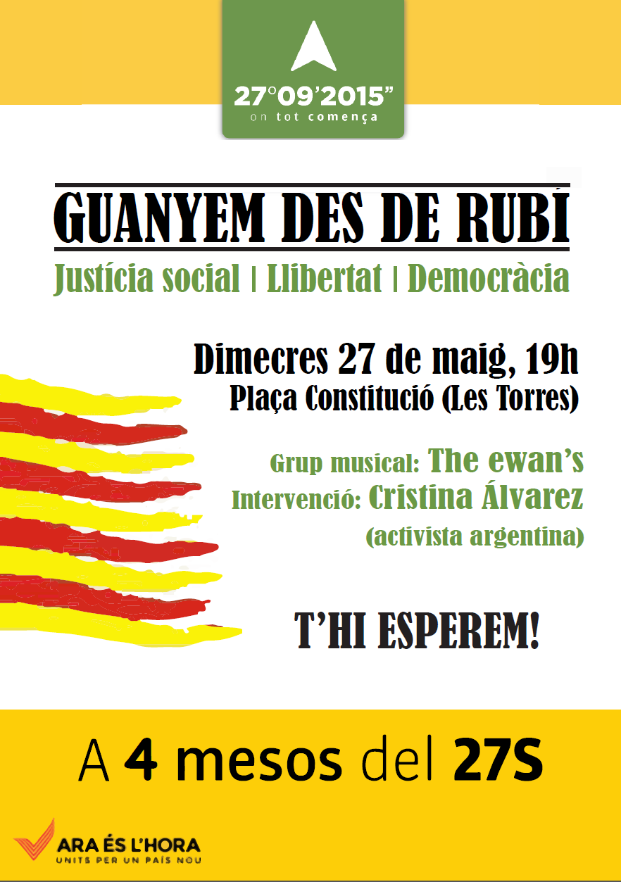 Acte a Rubí el 27 de maig: a 4 mesos del 27S