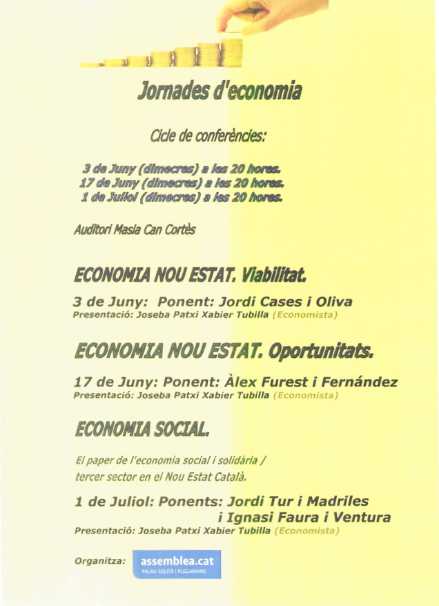 1 de juliol a Palau-solità i Plegamans, dins del cicle “Jornades d’economia”, Jordi Tur i Ignasi Faura parlaran de l’ “Economia social”