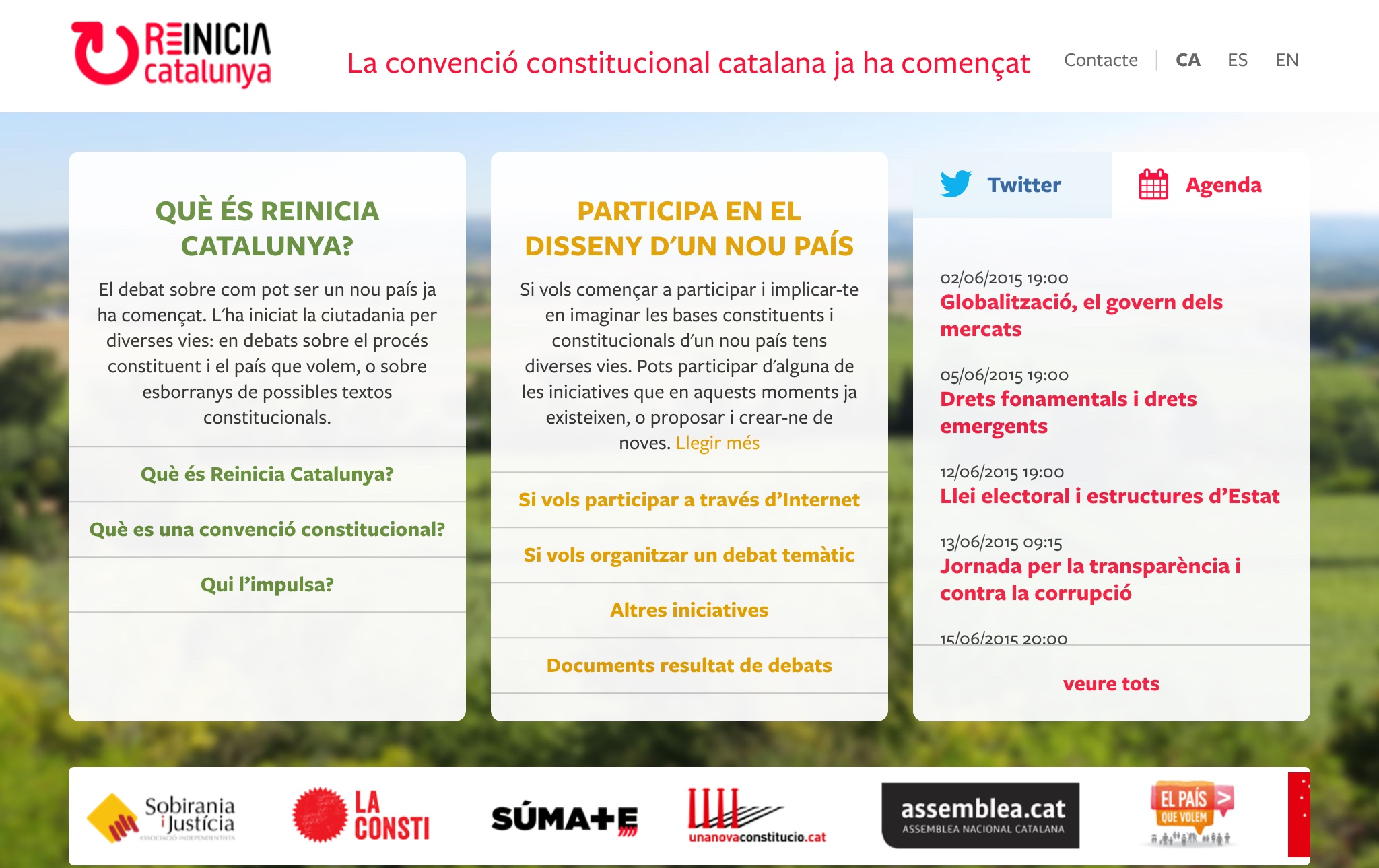 Podeu accedir a totes les iniciatives que tenen a veure amb el diàleg sobre les bases d’un nou país i els textos constitucionals a través de www.reiniciacatalunya.cat