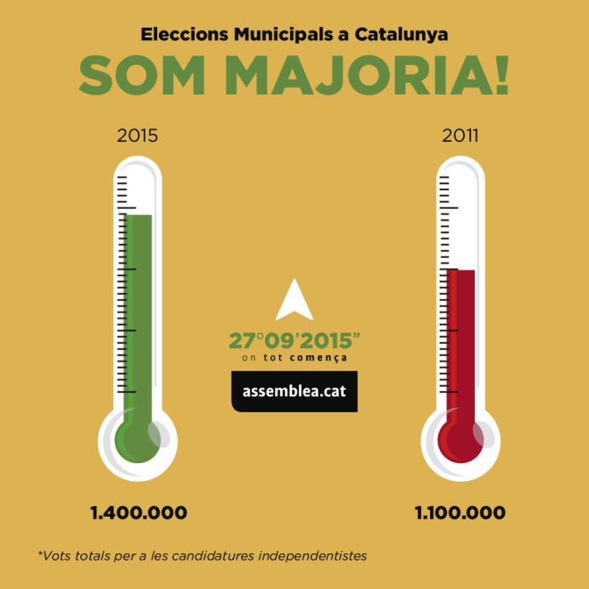Els resultats de les eleccions municipals a Catalunya ens diuen que les opcions independentistes  han augmentat en tres-cents mil vots.  Això és bo, però no és suficient.