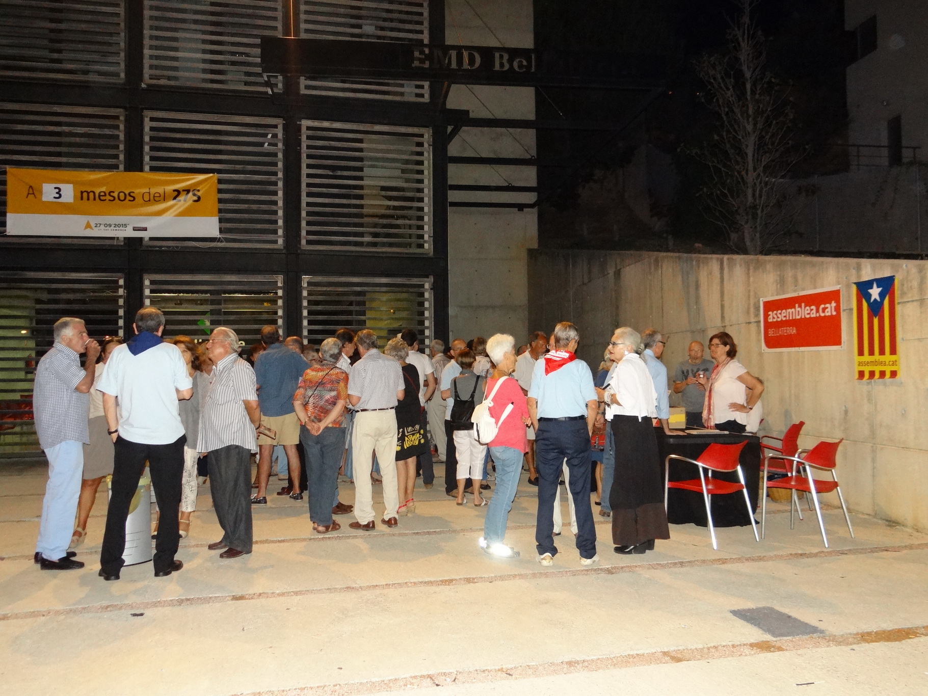 El canvi de xifra del marcador substituint el 4 pel 3 com a indicador dels mesos que falten per al 27-S fou un dels moments més efusius i entusiastes del capvespre, espai que fou aprofitat per manifestar la transversalitat de l’Assemblea, la versalitat d’actes que Bellaterra per la Independència organitza des de jornades de Recapte d’Aliments fins a implicar-se activament en les diades de l’11 de setembre així com en l’organització d’activitats culturals a la població.
