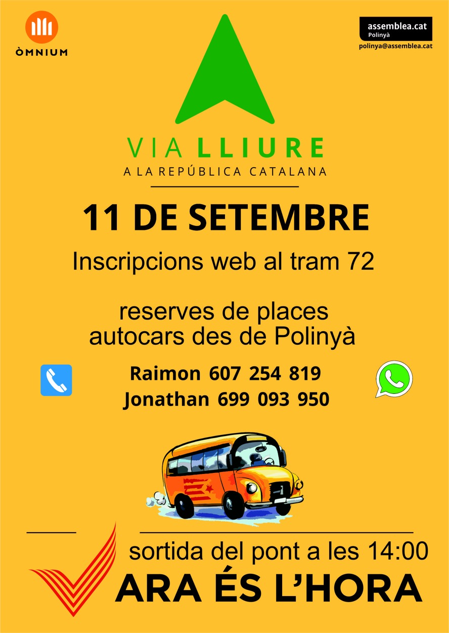 Des de Polinyà es poden reservar autocars per anar a la Meridiana trucant als telèfons 607 254 819 (Raimon) i 699 093 950 (Jonathan).