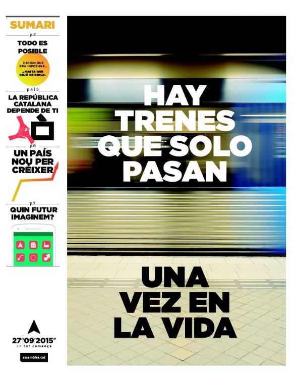 L’Assemblea començarà a repartir a partir de demà l’últim dels diaris amb els quals es proposa oferir arguments a favor de la independència. Aquest sisè número tindrà un tiratge de gairebé 450.000 exemplars i es distribuirà –principalment-, a estacions de metro, tren i altres transports a primera hora del matí (de 7.00 a 9.00).