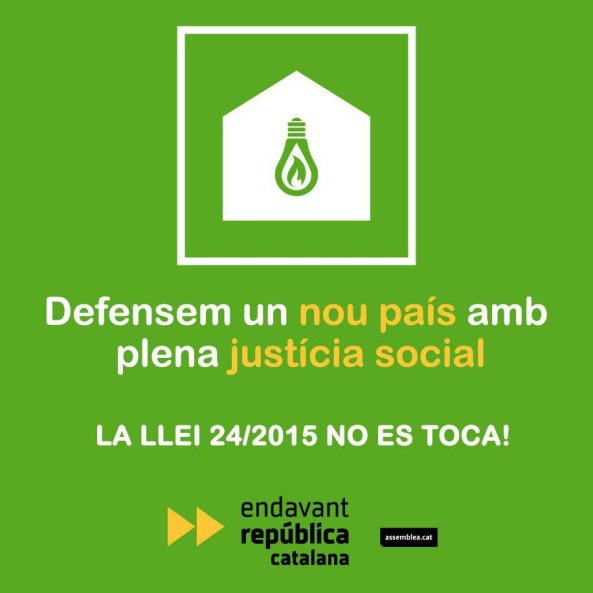 L’Assemblea Nacional Catalana (ANC) considera que la llei 24/2015 aprovada per unanimitat al Parlament de Catalunya i fruit d’una Iniciativa Legislativa Popular promoguda per diverses entitats (PAH, l’APE i l’Observatori DESC) és un exemple de la màxima expressió de la sobirania dels ciutadans de Catalunya.