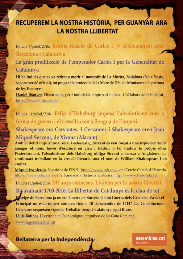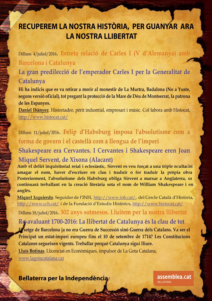 El proper dilluns 20 de juny es farà a Bellaterra la tercera sessió del Cicle d’Història organitzat per Bellaterra per la Independència.