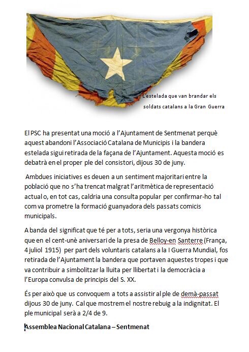 Sentmenat per la Independència proposa que els veïns acudeixin al ple per defensar l’estelada i la pertinença a l’AMI.