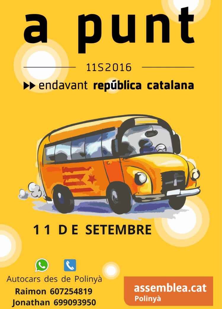 Polinyà Per reservar autocar feu servir telèfon 607 254 819 (Raimon) o 699 093 950 (Jonathan) o el correu polinya@assemblea.cat. Preu 9€.