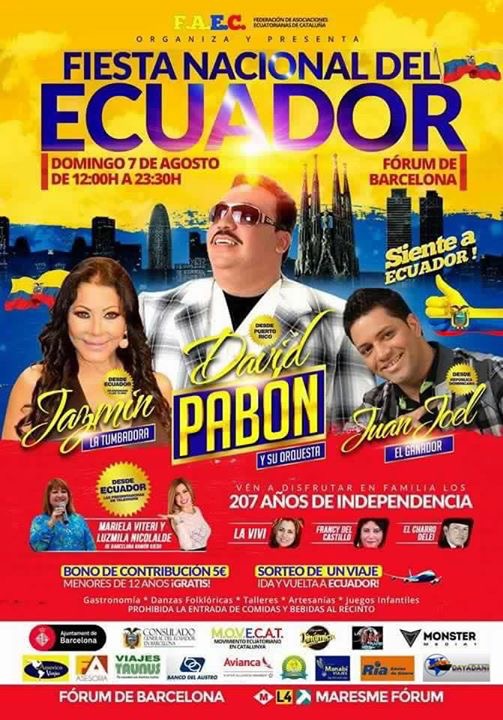 Aquest proper diumenge 7 d’agost, la Federación de Asociaciones del Ecuador de Catalunya fa una gran festa al Fòrum de BCN per celebrar els 207 anys de la seva independència! L’any passat van passar per allà unes 22.000 persones.