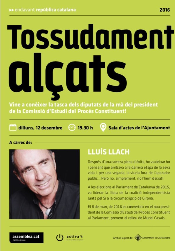 Lluís Llach serà a Castellbisbal el pròxim dilluns 12 de desembre. L’acte serà a les 19:30 a la sala d’actes de l’Ajuntament.