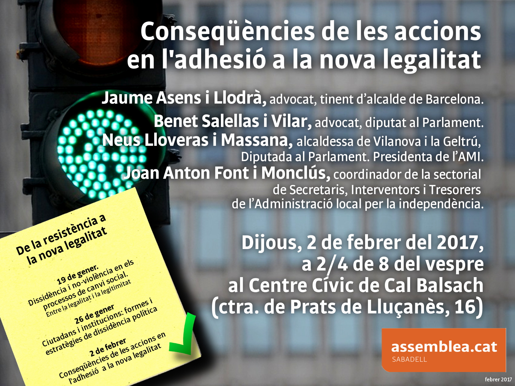 Des de Sabadell per la independència hem organitzat un cicle d’actes amb el títol “De la resistència a la nova legalitat“.
