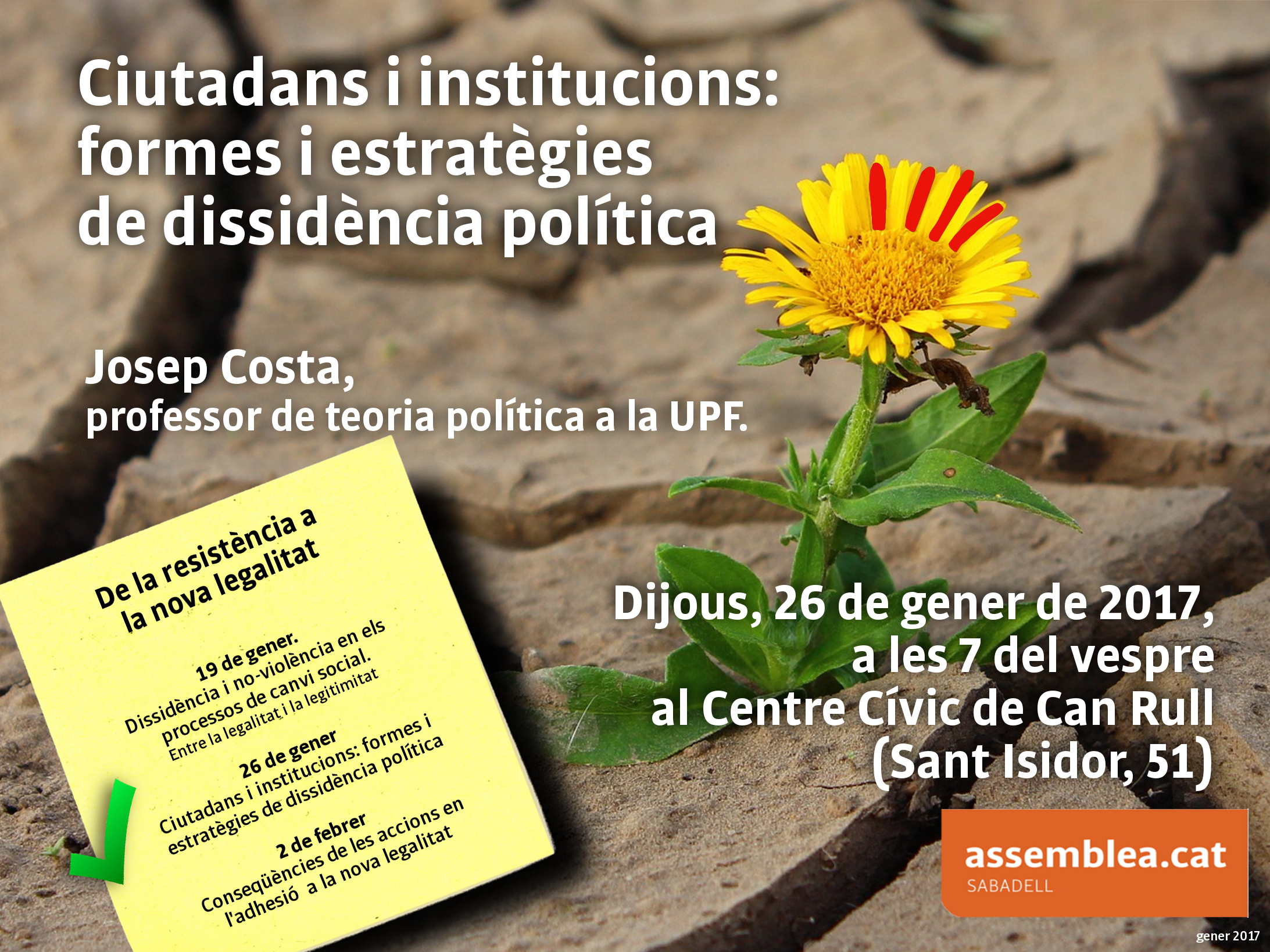 Aquesta xerrada titulada “Ciutadans i institucions: formes i estratègies de dissidència política” la va donar Josep Costa, professor de teoria política de la UPF i lletrat.