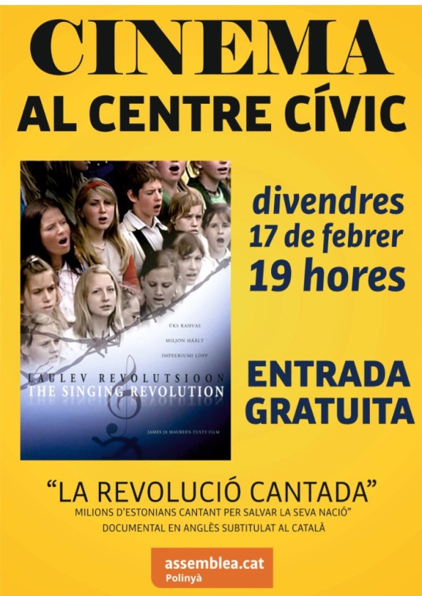 El documental que explica el procés d’independència d’Estònia, “La revolució cantada”es projectarà a Polinyà, el divendres 17 de febrer, a les 19:00, al Centre Cívic.