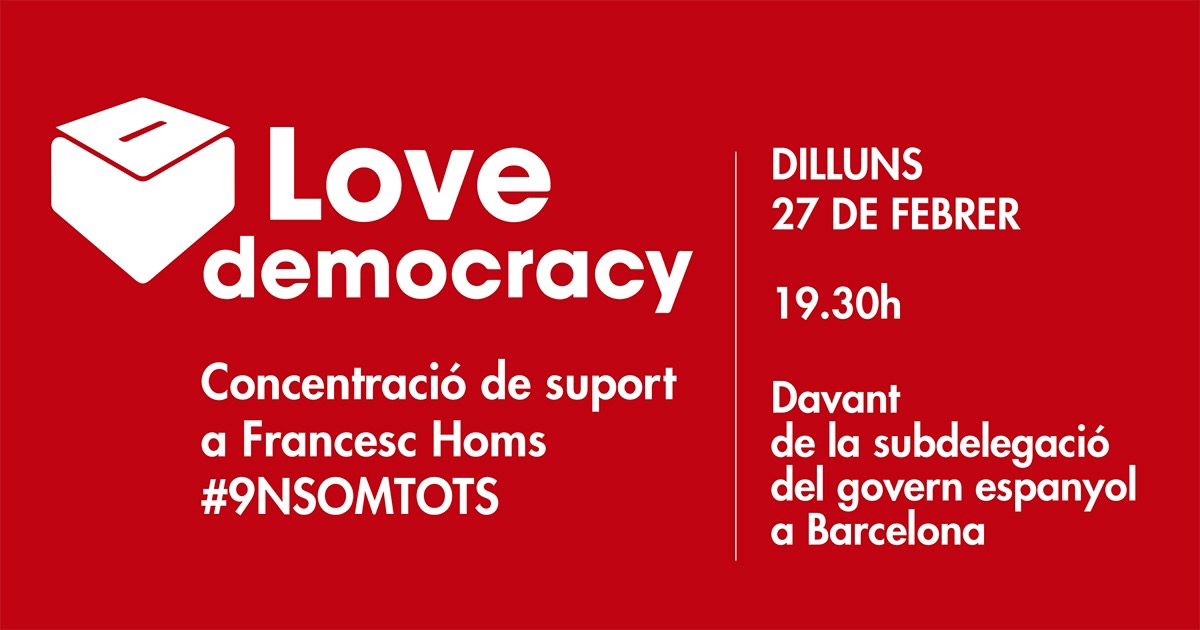 Les entitats també convoquen concentracions de solidaritat el mateix dilluns davant les delegacions provincials del Govern espanyol a Barcelona, Girona, Lleida i Tarragona i a nombrosos ajuntaments de Catalunya. A Taradell, poble natal de Francesc Homs, preparen també una concentració especial.