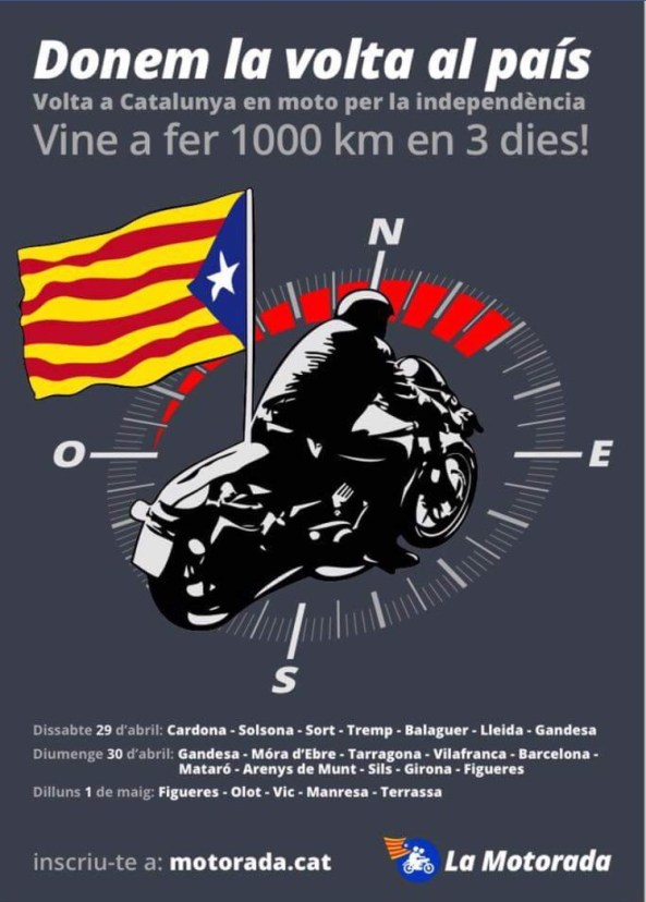 LA MOTORADA, entitat sobiranista de defensa dels drets dels motoristes, finalitza la Volta al País a Terrassa!. Serà el proper dilluns 1r de maig.