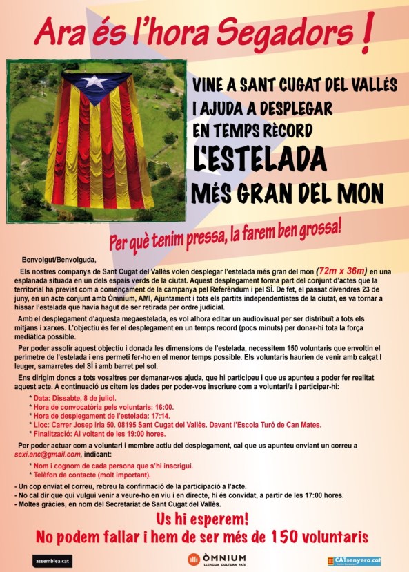 - el nostre ple suport a la voluntat expressada pel Parlament de Catalunya i el Govern de la Generalitat i els encoratgem a seguir avançant en tots aquells passos necessaris per fer efectiva l’organització, convocatòria, celebració i aplicació del referèndum anunciat pel proper 1 d’octubre.