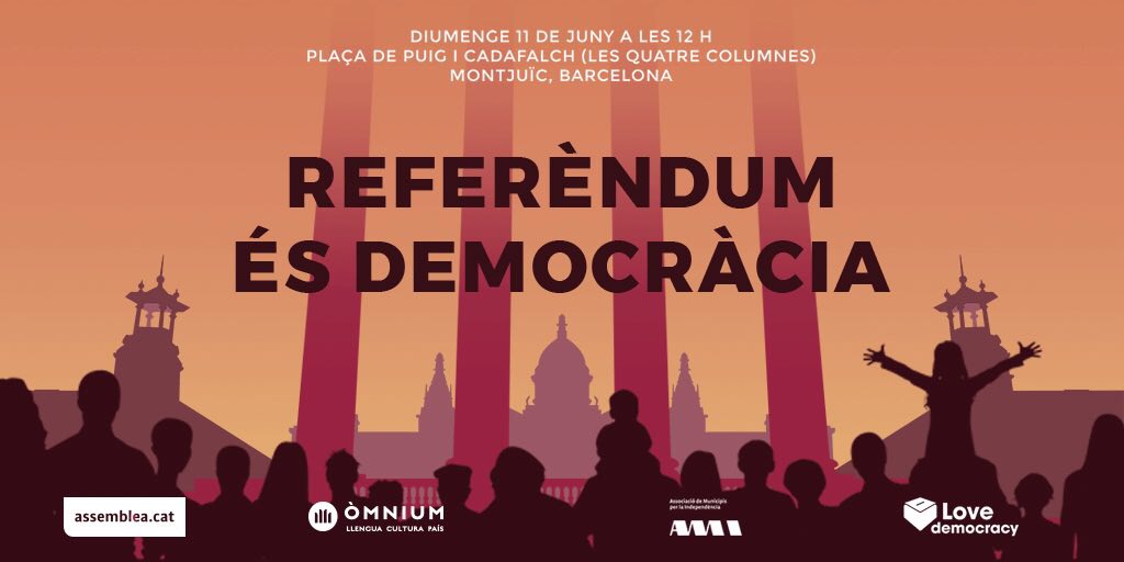 L’Assemblea Nacional Catalana, Òmnium Cultural i l’Associació de Municipis per la Independència convoquen el proper diumenge, 11 de juny, a les 12 h, a un acte en defensa del referèndum. El títol de l’acte serà “Referèndum és democràcia“.