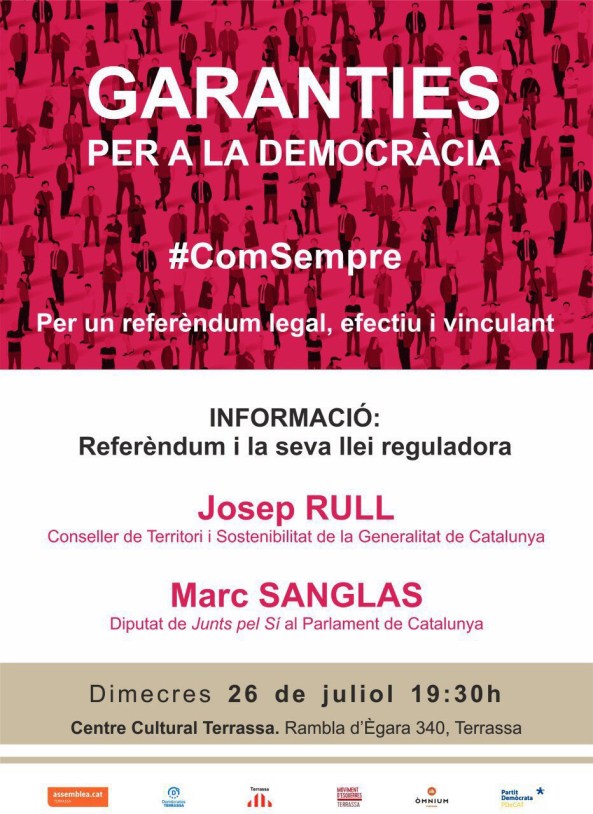 - Terrassa 19:30 Sala gran del Centre Cultural. Rambla Ègara 340. Amb Josep Rull i Marc Sanglas Més informació.