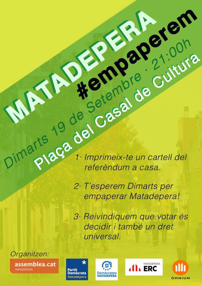 El dimarts 19 de setembre es farà a Matadepera una empaperada popular. Cal portar els cartells impresos de casa.