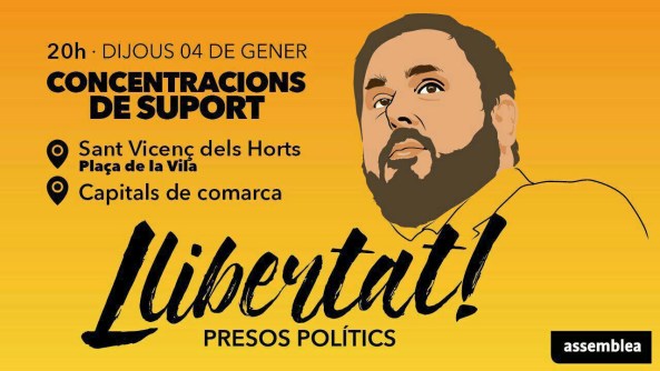 El rei Felip VI ens va contar per Nadal que Espanya és una democràcia madura. A Catalunya, ens sembla que un democràcia que té presos polítics i tribunals que poden alterar el resultat d’unes eleccions és una democràcia podrida. Fins que l’Oriol Junqueras no torni a Sant Vicenç dels Horts i tots els presos no siguin a casa seva, no descansarem. Sabem que una amplíssima majoria de catalans, partidaris de la República o no, de gairebé tots els partits i de moltíssimes organitzacions, unirem els nostres esforços contra la repressió i per la llibertat.