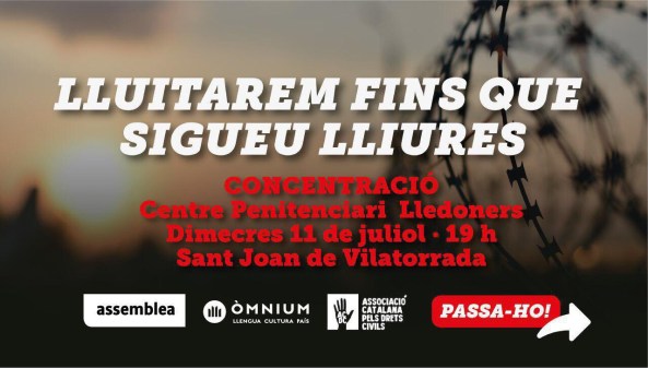 El dilluns 16 de juliol, a Sant Cugat del Vallès es farà una concentració a favor de la llibertat dels presos polítics.