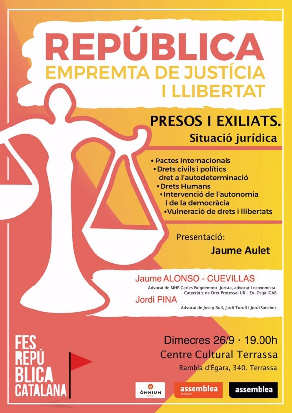 El dimecres 19 de setembre, a la Universitat Autònoma de Barcelona, es farà un acte en suport a les dones preses i exiliades. Hi intervindran Mercè Barceló, Mireia Boya, Laia Casas, Pilar Rebaque, Cristina Sànchez i Tània Verge. Presentarà l’acte l’Eulàlia Subirà.